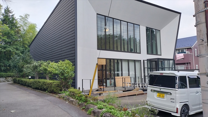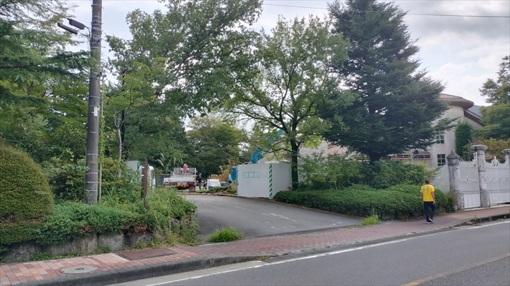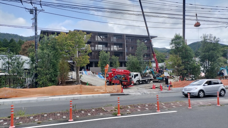 東急のホテルコンドミニアム12月15日開業する 「BLISSTIA(ブリスティア)箱根仙石原」の建物はほぼ完成し、エントランス付近の工事が行われていました。