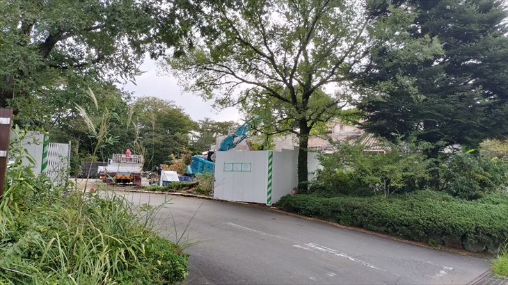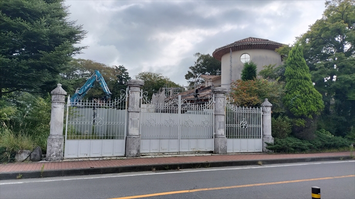 温泉に入り8時30分ころすすき高原一周の朝散歩をしました。3月末で閉演した星の王子様ミュージアムの解体工事が行われていました。9月から12月末までに解体されるそうです。