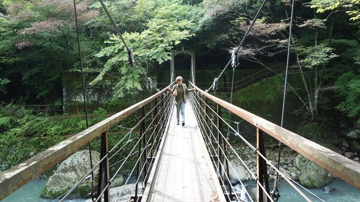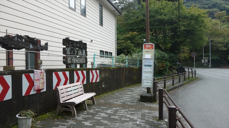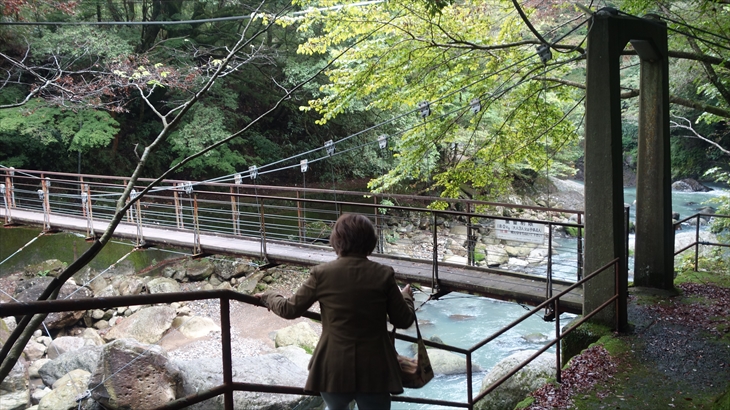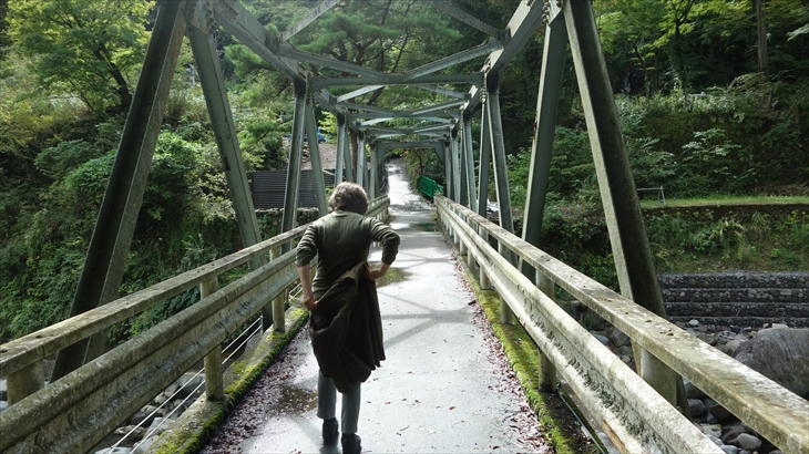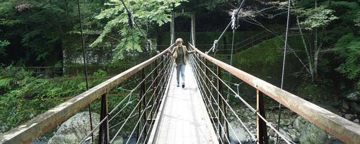 天気予報によると15時ころから雨降り。小田原行の路線バスに乗り込みハイキング入口のある木賀温泉入口に12時に到着、最初に約70m下り、吊り橋を渡り宮ノ下に向かって歩きます。