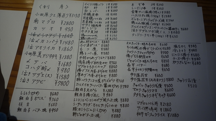 2つ目の初めては夕食。湿性花園近くの仙石原で人気居酒屋「かや香」です。19時にカウンター席を予約し約1時間30分、夕食を楽しみました。入店すると一階にある6つのテーブルは満席、仙石原とは思えないような賑わいです。