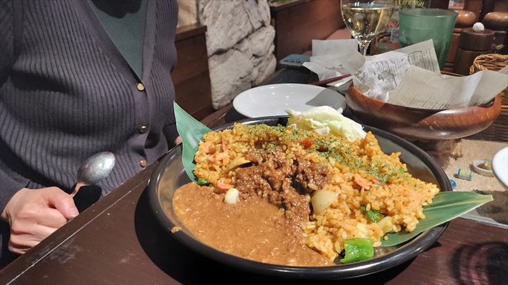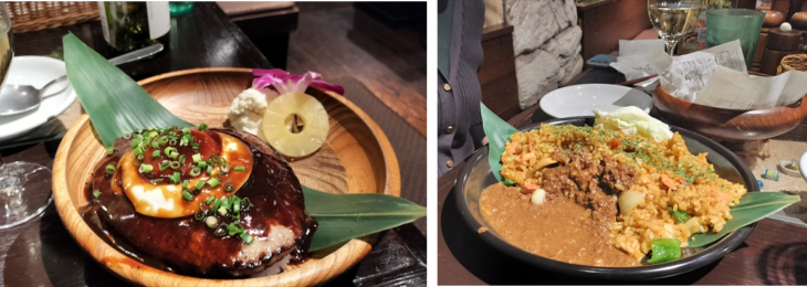 1時間ほどしてカレールーが乗ってるドライカレーカレーとロコモコを注文、想定していたよりもボリュームがありお腹一杯になりましった。