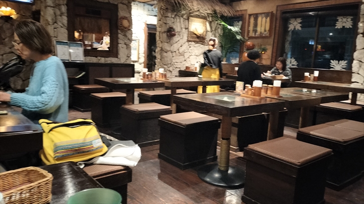乙種防火管理者研修は16時10分で終了、近くの珈琲館で時間をつぶし18時ころサンアロファに行きました。ハワイアン風の入口、階段を登り2階にお店があります。店内の雰囲気は少し歴史を感じるハワイ風、平日なので空いていました。