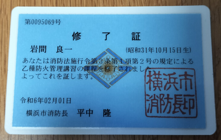 3月5日の神奈川区多文化共生ラウンジの開所にあたり、雑居ビルで業務を行う場合は防火管理者を設置する義務がある。そのため、1日研修で資格を貰える乙種防火管理者研修を受講しました。