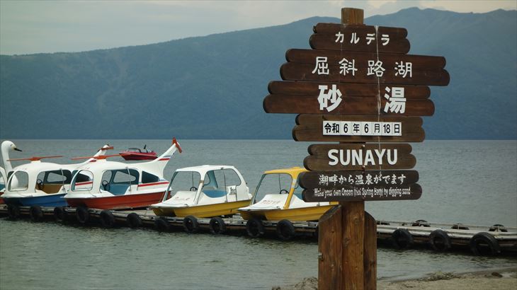 屈斜路湖の湖畔温泉を利用した砂湯という観光スポットがあります。湖畔の砂場で温泉遊びをしたり足湯を楽しんだりしている方がいました。