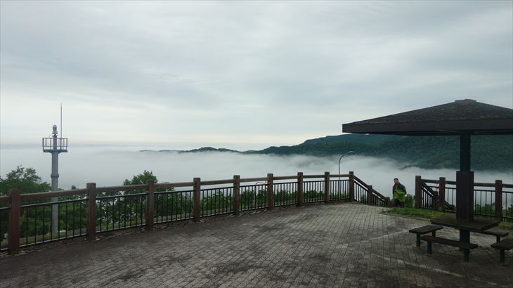 ホテル出発から約1時間、日勝峠第一展望台に到着しました。晴れていれば十勝平野を一望できるようですが、本日は曇りです。その代わり壮大な雲海見学できました