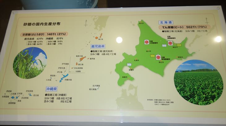 お砂糖の生産は沖縄・鹿児島のサトウキビが20%で残りの80%は北海道のビートだそうです。これを知れたことも大切ですが、北海道でのビート栽培からお砂糖が生産される工程を15分間のビデオで教えてもらえました。とても勉強になりました。ドライブしているとそれらしい畑がありました。