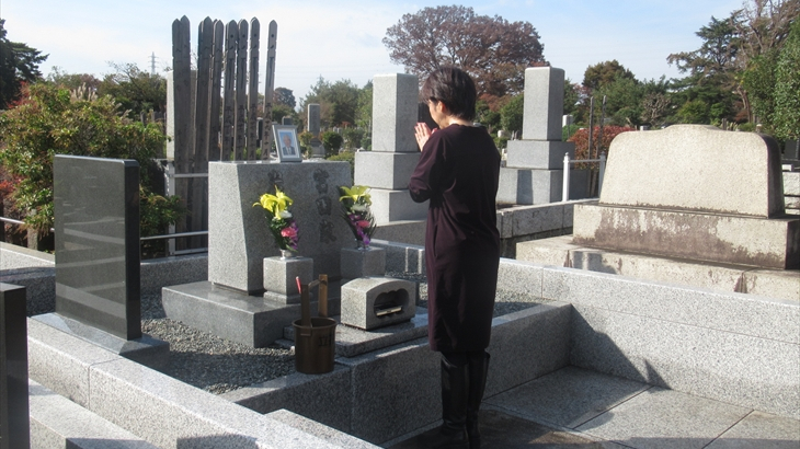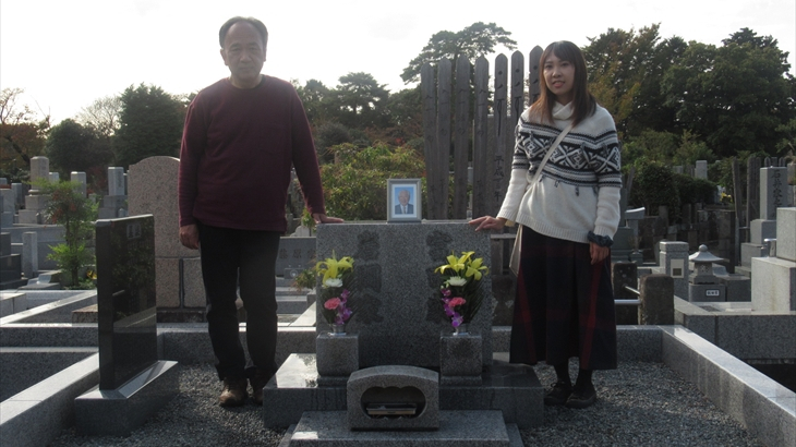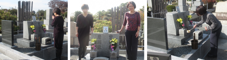 お焼香を終えた後、記念撮影です。墓石を囲んだ構図はいい感じでした。