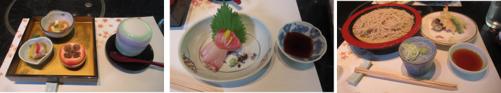 小鉢の前菜3種の次にはお造り(お刺身2点盛り)と茶碗蒸し。最後の天婦羅と深大寺セイロソバは絶妙なタイミング、お店の雰囲気も含め、良き精進落としでした。