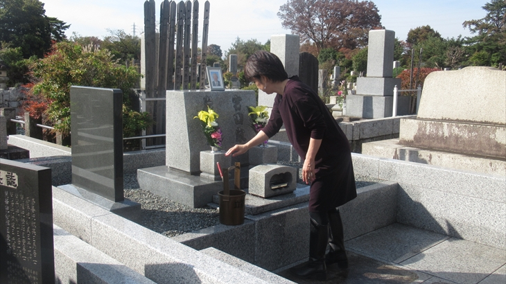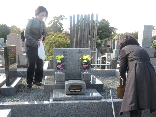 11時30分ころお墓に到着、お掃除から始めます。お掃除の途中、長女が迷子になり、携帯で連絡取りあいどうにか戻ってこれました。