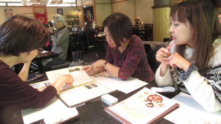 13時ころ到着、案内されたのは角の提案が望めるテーブル席、他のお客様は3組くらいで空いていました。蕎麦御前(2500円)を人数分お願いしました。