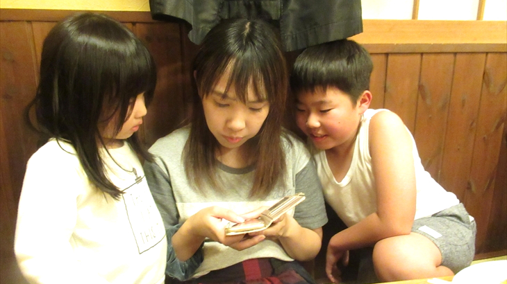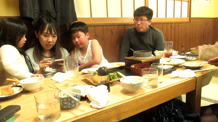 お座敷なので孫達は途中から歩きまわり大はしゃぎです。