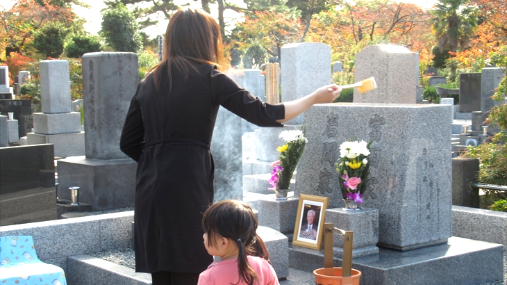 それでも集合時間に間に合い到着したところ、すでに妹家族がお墓の掃除などほぼ済ませてくれていました。全員集合し子供達とまた掃除、すっかりきれいになったところでお焼香、讃美歌を歌い記念写真でお墓詣りは終了です。
