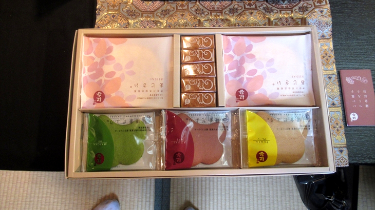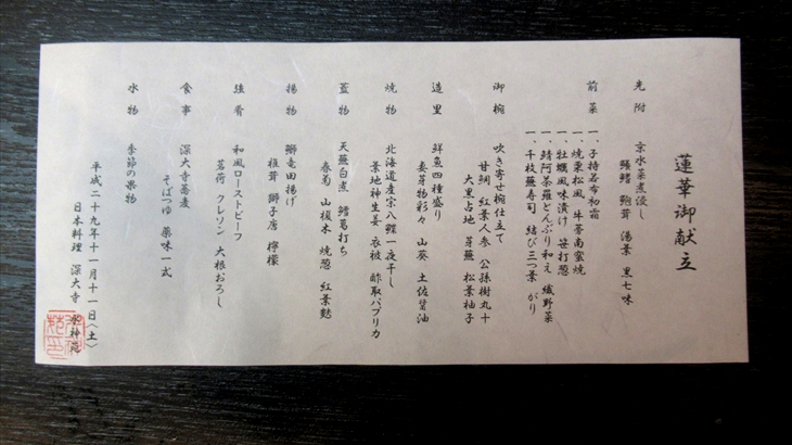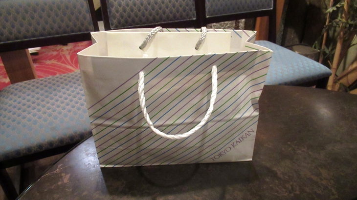 約3時間位の食事会が終わったころはすっかり暗くなっています。何故かこうした集まりがあると主催者がお土産を準備するという親族の習慣があり、今回は東京会館のプチフールとハンカチが用意されていたのに加え、急遽本日頂いた深大寺蕎麦を追加しました。
