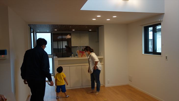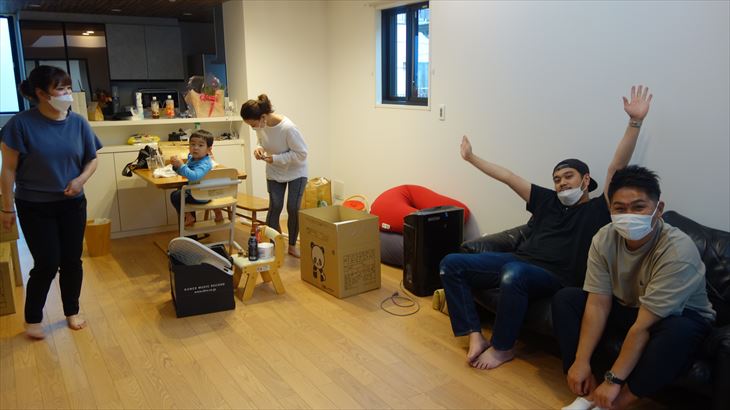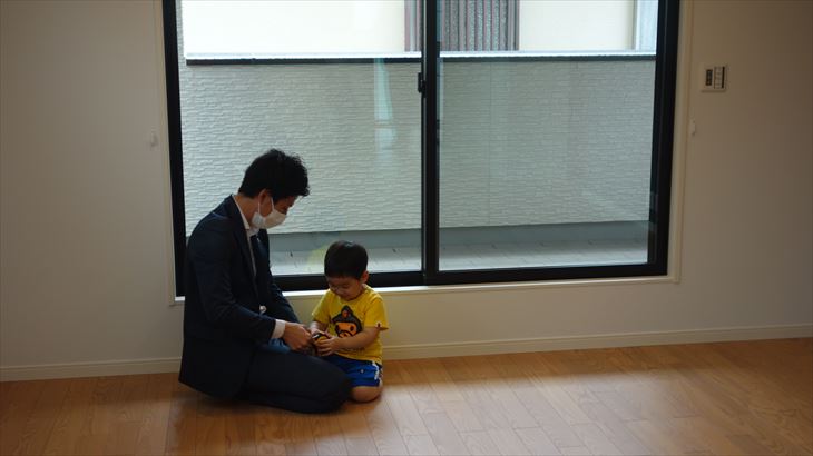 到着すると、お世話になったミサワホームの方3名(営業、技術、コーディネータ)が出迎えてくれました。早速、お部屋を見学、利太朗くんはリビングではしゃぎまわっています。1時間ほどの確認作業、引渡し書類に押印、鍵の贈呈これで引渡作業が終わり、この瞬間からこの家がミサワホームから片岡家へ所有権が移転されました。今日から自分の家・・・・