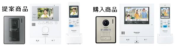 提案されたドアフォンを電気量販店で現物確認したところ、画面が小さいこと現状の外付け呼び出しフォンの取付位置が低いので広角レンズ仕様でないと訪問者の顔がわからないのではと思い、上位機種(VL-SWD505KF)をネットで36,000円で購入しました。