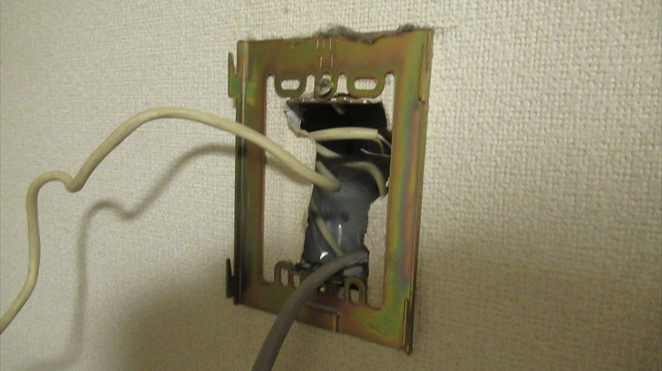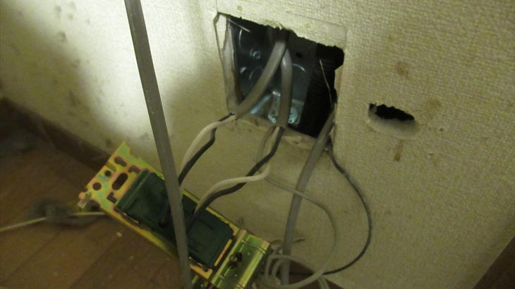 まず、3階の既存インターフォンを取り外し壁面の穴をスイッチ目隠しプレートで塞ぎました。ここまでは簡単。