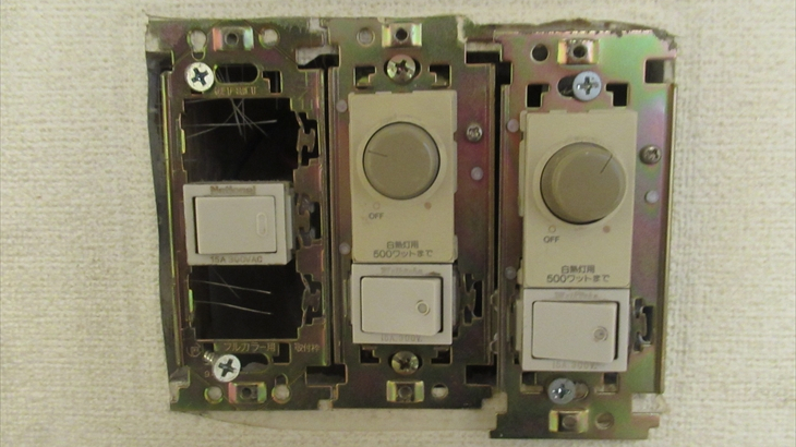 ホームセンターへ調光スイッチを探しましたが見つかりません。ネット検索しどうにかそれらしいものを注文、取付ようとしましたが既存の調光スイッチは片切り仕様、届いた調光スイッチは3回路仕様。