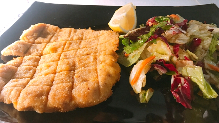 お正月に放映された「モヤモヤさまぁ~ず2:イタリア・ミラノ」で知ったのですがミラノカツレツは日本のトンカツとは違い仔牛の肉を打いて薄く伸ばしたものにパン粉をつけて揚げた有名なお料理です。