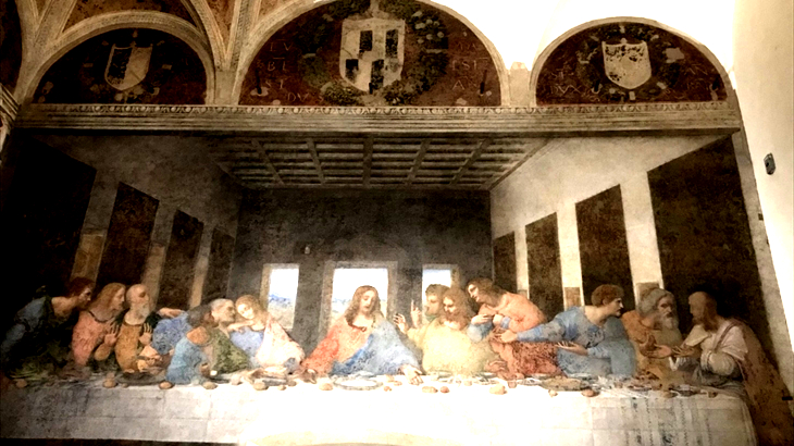 最初にサンタ・マリア・デレ・グラツィエ教会へ行き、1498年に描かれたダビンチの最高傑作「最後の晩餐」を見学。