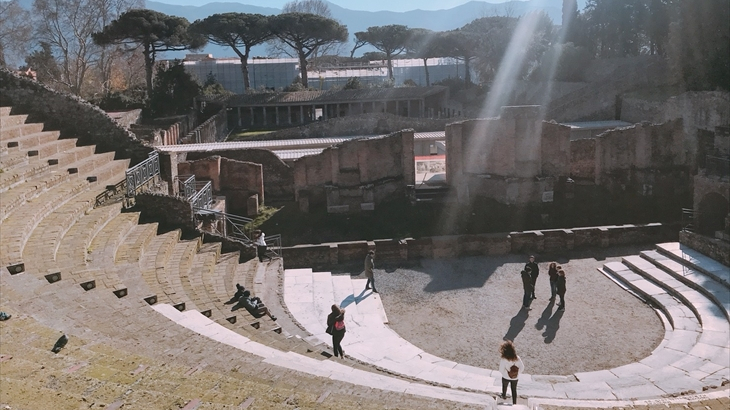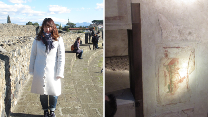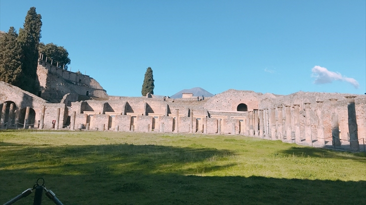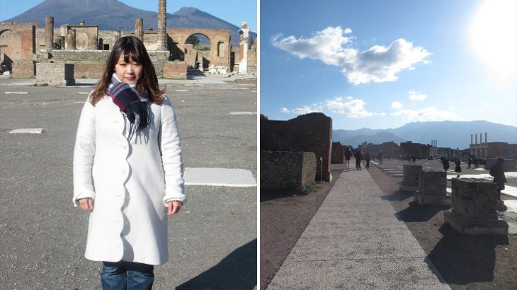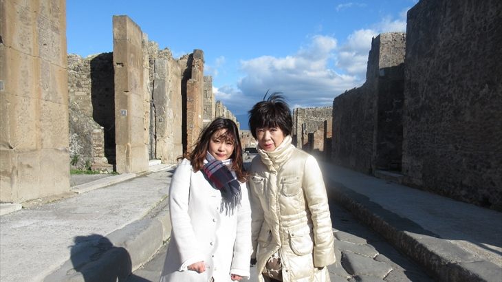 帝政ローマ時代の西暦79年(弥生時代)に、ヴェスーヴィオ火山の大噴火により、灰の下に埋まった町ポンペイ火山灰の下から、当時の生活をそのまま残した遺跡が発掘され、時が止まった古代ローマの町としてあまりにも有名な観光スポット。