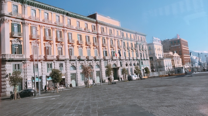 本日は1日自由行動。オプショナルツワー「ナポリ・ポンペイ遺跡1日観光」を申し込みました。共和国広場に集合して約12時間の観光です。135ユーロ(約17,000円)で昼食付。