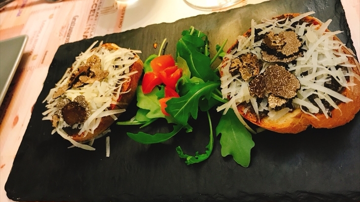 約半日ポンペイ遺跡を見学しローマにもどったのはもう暗く、夕食は白トリュフで有名なお店で晩御飯。予約してなかったけれど日本人に有名なお店らしいです。