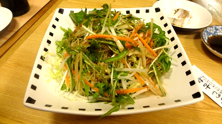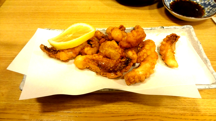 すぐに、冷やし中華みたいとの孫の感想「ラーメンサラダ」、揚げ出し豆腐、タコの唐揚げが到着。それぞれとりわけて頂いていると、メンチカツ(コロッケと同じ大きさとキャベツは同じ)、とり唐揚げ、フライドポテト(業務用ではなく自家製)の揚げ物オンパレードです。