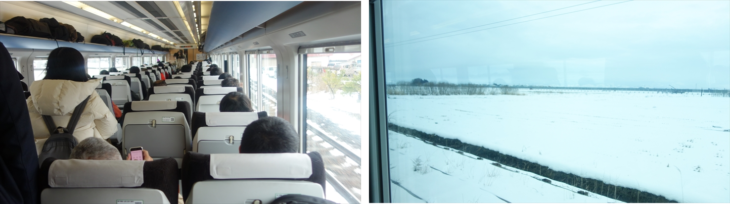 6時4分発のやまびこ51号盛岡行きの自由席に乗り込み旅が始まりました。東京駅では6割程度の乗車率でしたが、だんだん込み合ってきて福島駅からは通勤客は座れないほどの混雑。盛岡に9時17分に無事到着しました。