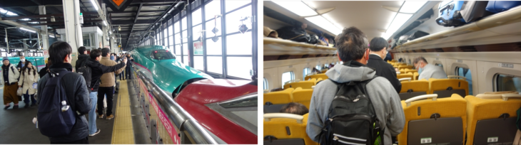12時40分発の奥羽本線自由席に行ってみると、満席です。空いてる指定席に座って少しすると車掌さんの切符拝見、「指定券が無いと座れません」とのこと「ではグリーンは空いていますか?」と尋ねると「空いていますが、この切符では購入できません」との回答。しかたなく2時間40分、立ちっぱなしで新青森までに行きました。弘前駅でたくさんの方が乗り込み電車は満席です。とても、疲れた~~