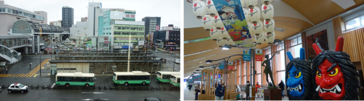 盛岡から秋田までは新幹線こまち、この電車は全席指定席なので盛岡に着く前に「えきねっと」で数席しか残っていない指定券を購入、満席です。隣の外国の方が子供達と離れ離れの席で困っていた様子なので変わってあげました。秋田駅には11時24分頃到着。雪積って無かったことに少しびっくりです。