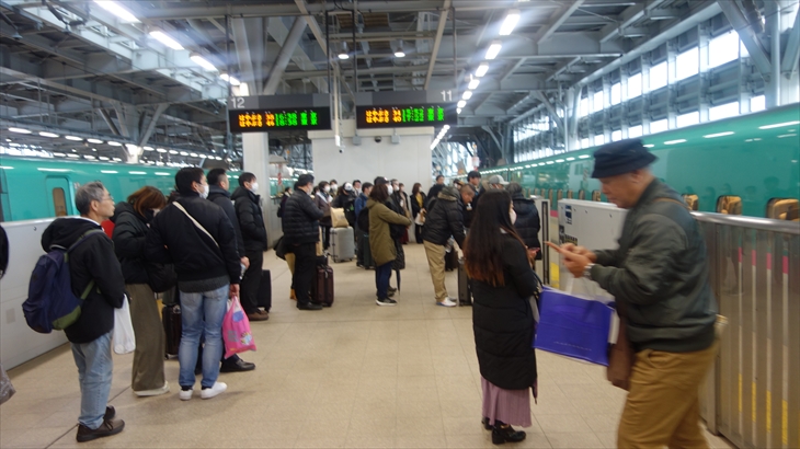 新青森からの新幹線は全て全席指定。ネットで確認するとほとんど満席、駄目もとでみどりの窓口に行ってみると15時52分のはやぶさ34号の座席がとれたので、お土産を買う気力もなく乗り込み東京まで戻りました。