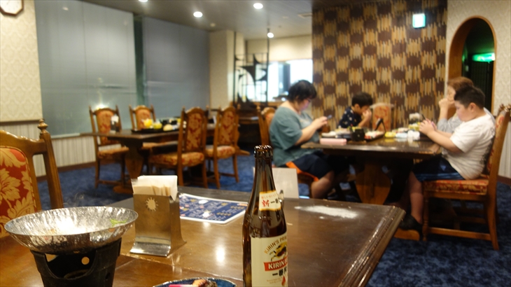 瓶ビールとハイボール2杯で夕食は美味しかった。でも旅行中の食事ではスマフォは大人も子供も禁止した方がよいですね。