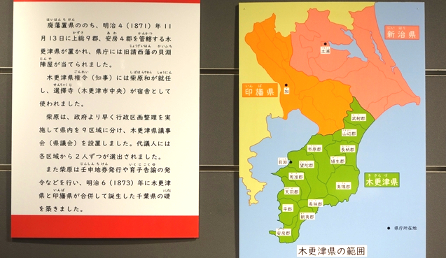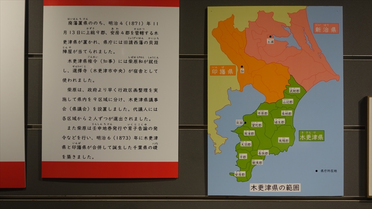 木更津市郷土博物館もあり65歳以上無料の特典を利用して見学しました。展示は縄文時代、弥生時代、飛行場のあった戦争時代、明治時代や生活(海苔養殖、自動掘削の上総井戸の普及)など多岐にわたっていますが、明治時代の廃藩置県で木更津県と印旛県ができその後合併して千葉県になったと初めて知りました。地元ならではの情報入手、郷土博物館はいいですね・・・