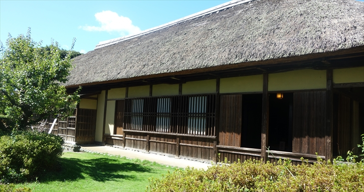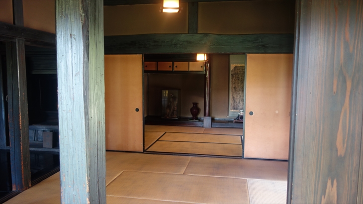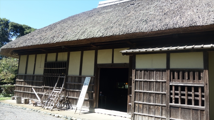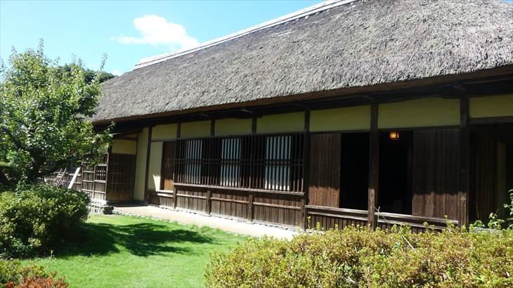 郷土博物館見学の後にすぐ近くに旧安西邸(江戸時代中期の農家)見学に行きました。この農家は10km離れたところから約30年前に解体してここに復元したもの、当時は幕府により贅沢として禁止されていた仕様を取り込み建築されてるなどボランティア説明員の方から教えてもらいました。平日はこういう方々はいないのでしょう、シルバーウイーク旅行の特権ですね。