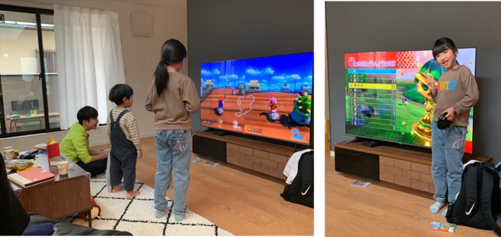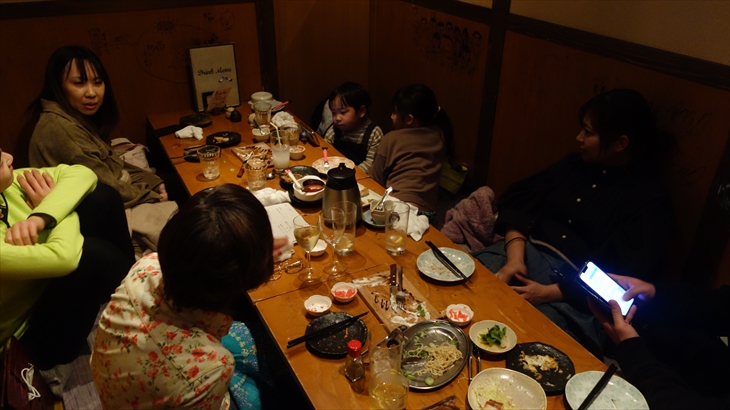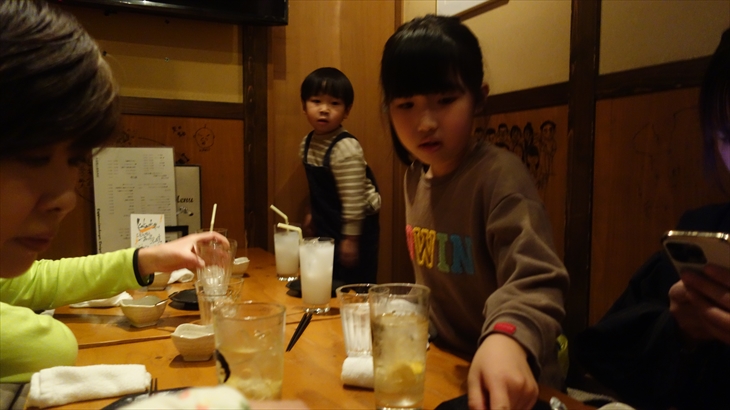 それから子どもたちはテレビゲーム、大人はマッタリして夕方まで過ごしました。夕食は外食、8名のお座敷が空いていた鉄板焼き居酒屋「たいよう」に予約しました。