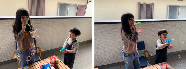私が1番乗りで11時50分ころ到着、サト達と律子さんは12時15分ころ一緒に到着。利太朗くんはアヤちゃんが来たので大はしゃぎ、ベランダで一緒にシャボン玉して楽しく遊んでいます。