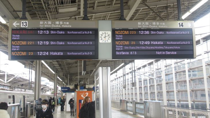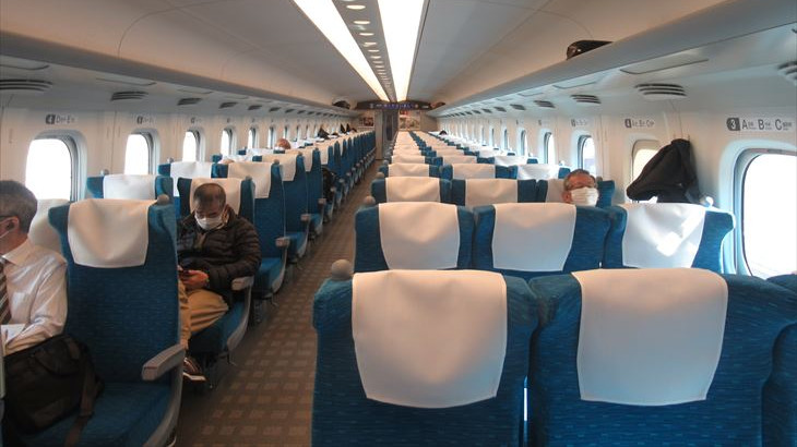 レール&レンタカーは新幹線「のぞみ」には乗れないので9:50の「ひかり」自由席に乗り込みました。乗客は1両に10名程度とガラガラです。