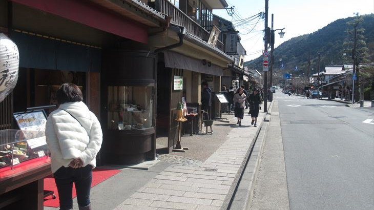 お天気も良く、渡月橋まで徒歩で約20分。湯豆腐のお店を探すべく渡月橋を横断しましたがそこには無く、一端戻り探し当てたのは13:40。