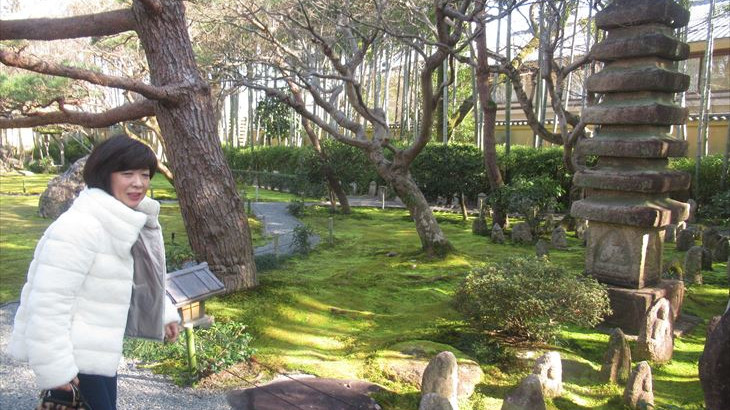 食後に数寄屋造りの純和風建築、日本庭園を見学し、写真撮影を行いヘルシーな京都最初のお食事は終了しました。