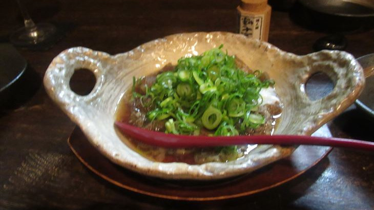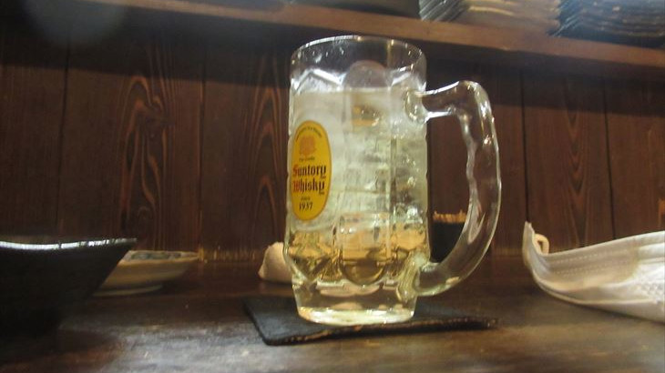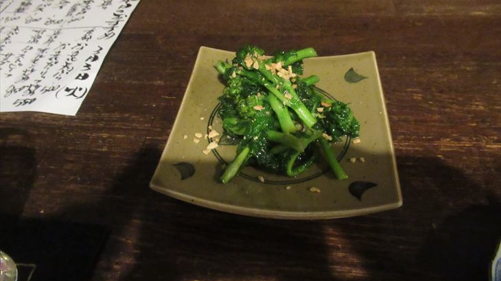 暖簾を潜ると6名程度のカウンターに先客が2名、ビールで乾杯し菜の花の和え物、鯛のかぶと焼き、人気たこ焼き、湯葉、変わりナポリタン、牛筋煮込み等のお料理をハイボールと一緒にいただきました。