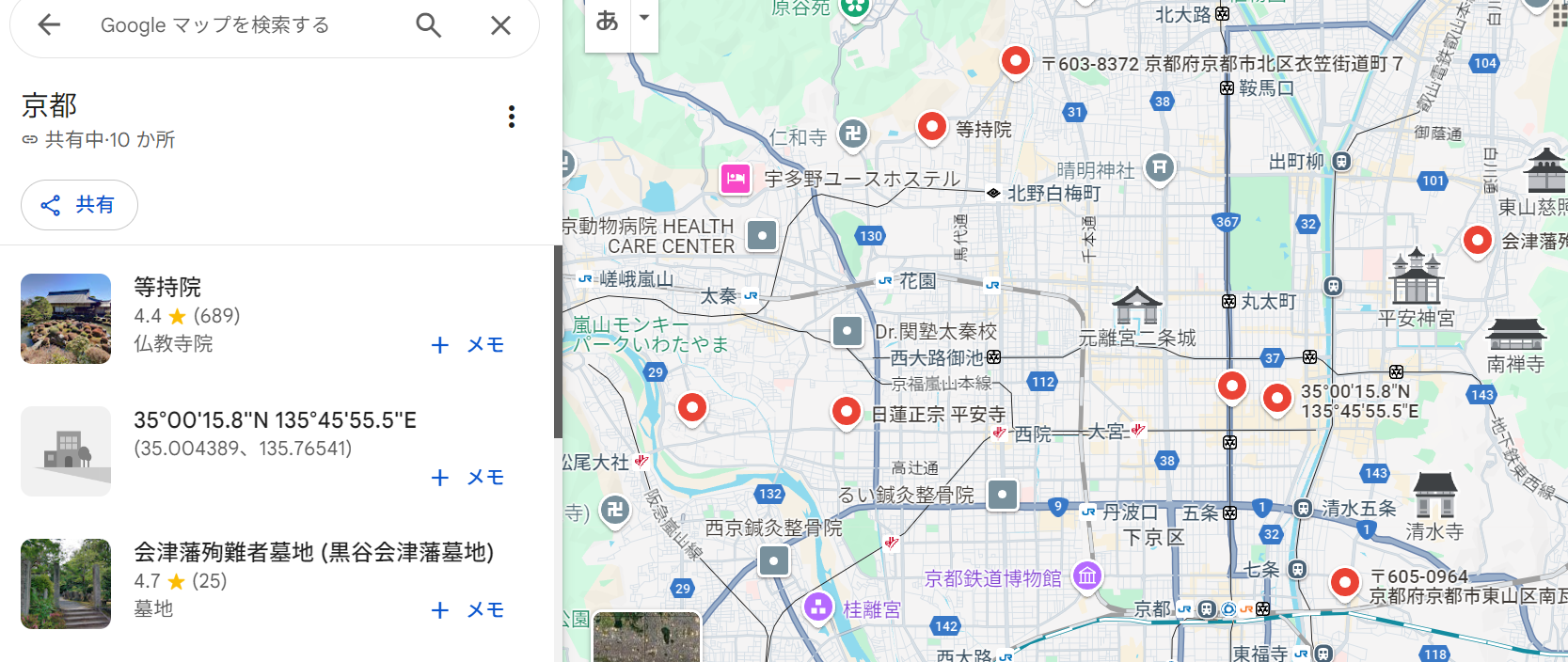 前日に義人叔父さんの家に電話し、奥さんと等持院で13時30分に待ち合わせしました。ホテルチェックアウトを10時ころ済ませ、時間があるので京都市バスの循環バスで一周観光しました。