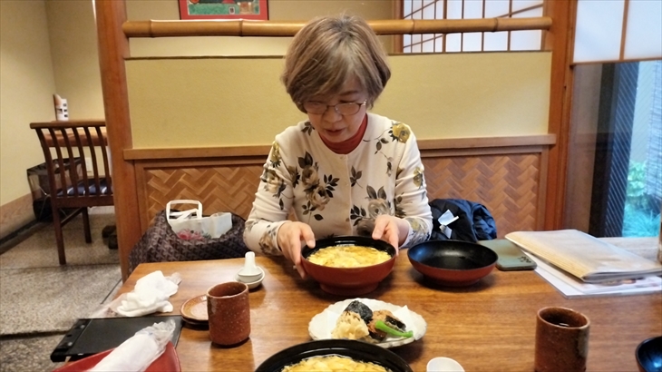 ホテルに荷物を一端預けて、錦市場付近の老舗お蕎麦屋さん「権太呂」で名物の「鶏卵うどん」を頂きました、蕎麦とうどんをそれぞれ注文、蕎麦はあんかけ出汁を吸収してしまうので、うどんの方がツルツル感があり良かったと思いました。