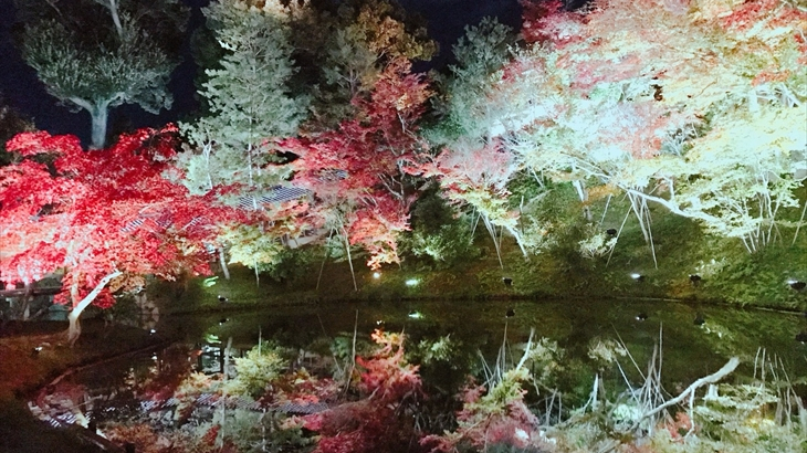 夜の高台寺、圓徳院の紅葉はライトアップ演出で周りの風景と調和し大変すばらしかった。沢山写真を撮影しました。春は桜も有名らしいです。