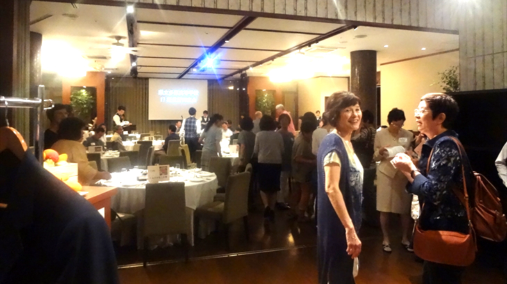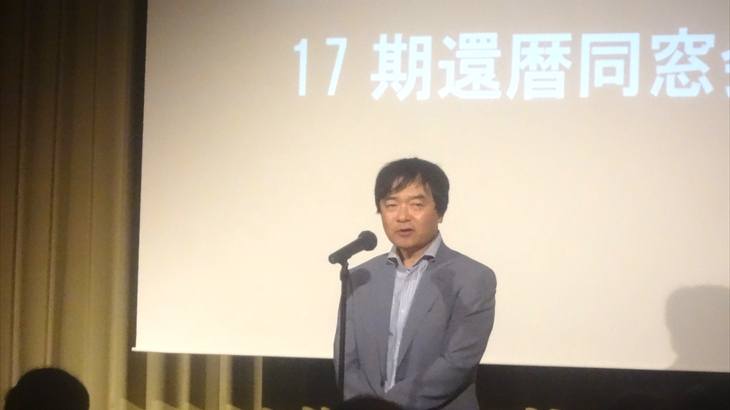 幹事の方から開会の挨拶。本日の出席者は男性42名、女性56名、先生達来賓5名の約100名と報告があり、「今後は責任・義務から解放され新しい人生をスタートしよう」との言葉が印象的でした。来賓の方の乾杯の音頭は本当に「乾杯」だけでした・・・。