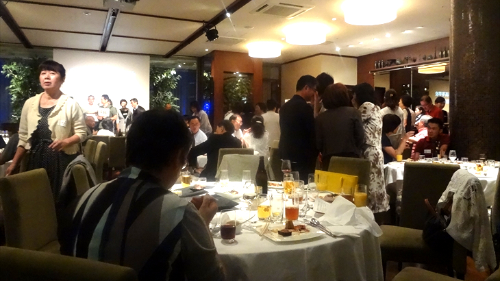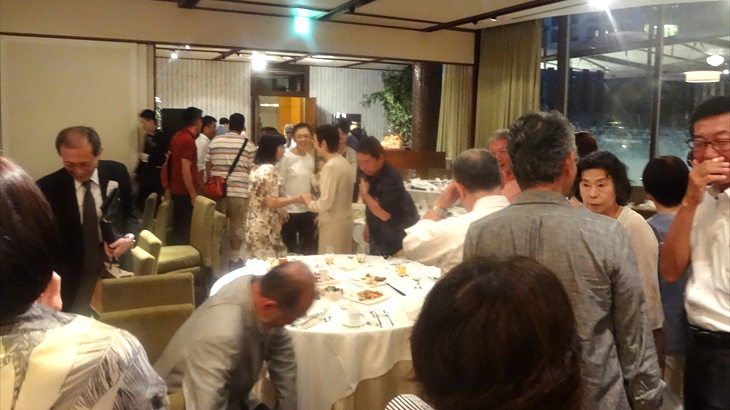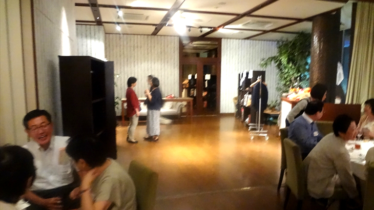 同窓会のはじまりのころは数名しか認識できませんでしたが、クジ指定席でビール3杯くらい飲むと、お酒を片手に席の移動です。若干乱れてきて色々な場所で立食小グループが形成されています。私も色々と渡り歩き、だいぶ顔と名前が一致するようになり、最終的には半分位の方を理解しました。