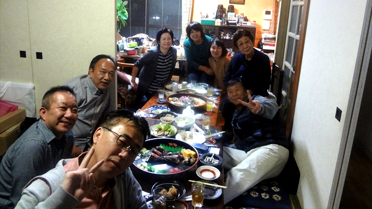皆還暦なので、再就職、子供達の様子など近況確認から始まり、昔話に花が咲きます。当時の喫茶店で受験勉強していたマスターとママさんの今は教頭先生の息子が来てくれ全員集合。PM8:30頃までお邪魔し、記念撮影を行い一端解散することになりました。