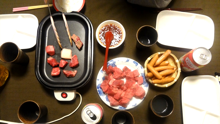 ホットプレートは場所をとるので簡易プレートで焼肉をすることにしました、焼き具合が絶妙なお肉は先月、新宿エクセレントクラブの鉄板焼きコーナで食べたものとほぼ同じ、お肉と焼き方を極めれば家でも高級店鉄板コーナが簡易プレートで実現可能かもしれません。