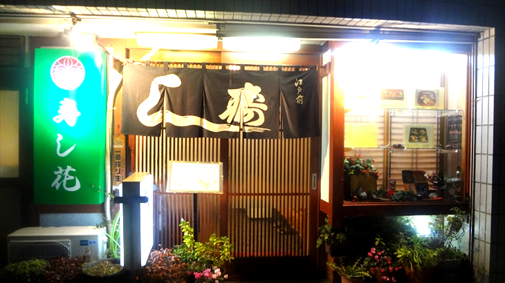 東白楽駅から徒歩1分にある「寿し花」。大晦日・元旦も営業していたので、ひょっとしたら今日(1月4日)も開店しているのではと閃き、夜8時ころ電話確認し、8時30分ころ来店しました。