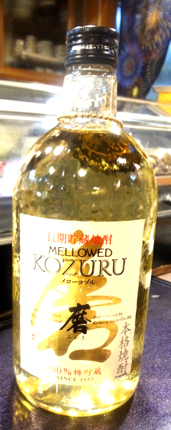 看板をくぐり店内に入り、カウンターに座りした。また来店することもあると思い、焼酎のボトルを注文。ウイスキーの様な琥珀色と味わいの鹿児島県メローコヅルの里で熟成された「メローコヅル 磨」。