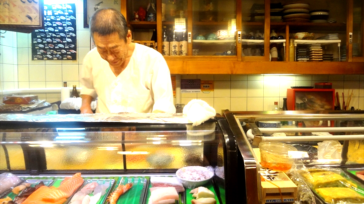 年末、横浜中央卸売市場内にある創業明治16年の寿司屋「さがみや」に行きました。お醤油をはけで塗り、お箸を使わないで手で頂き、ガラスカウンターの下にチョロチョロと流れる水で指を洗う独特な仕組。